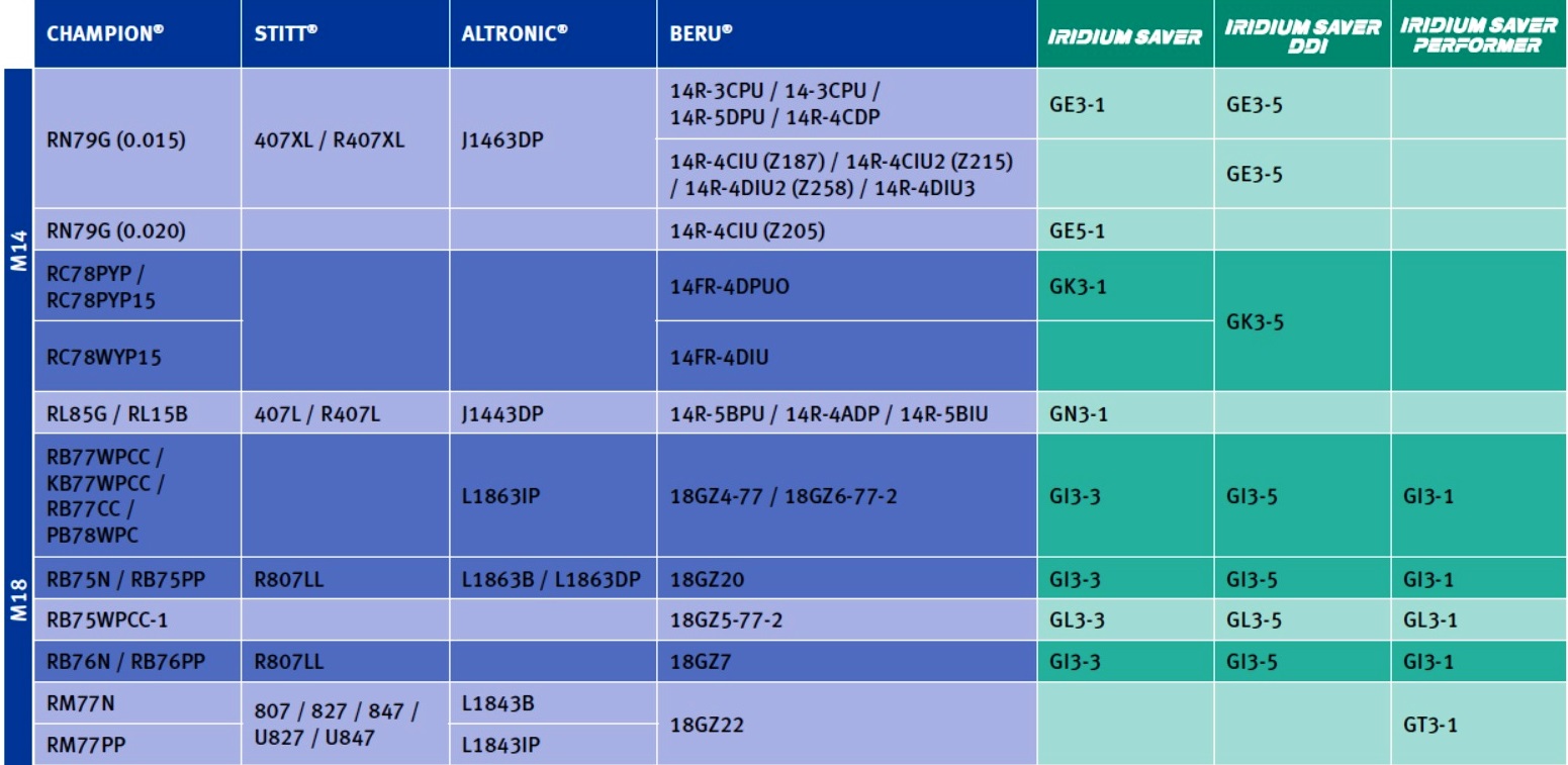 Ниже в таблице Вы можете найти соответствие свечей других брендов (Champion, BERU, Altronic, Stitt) свечам Denso.